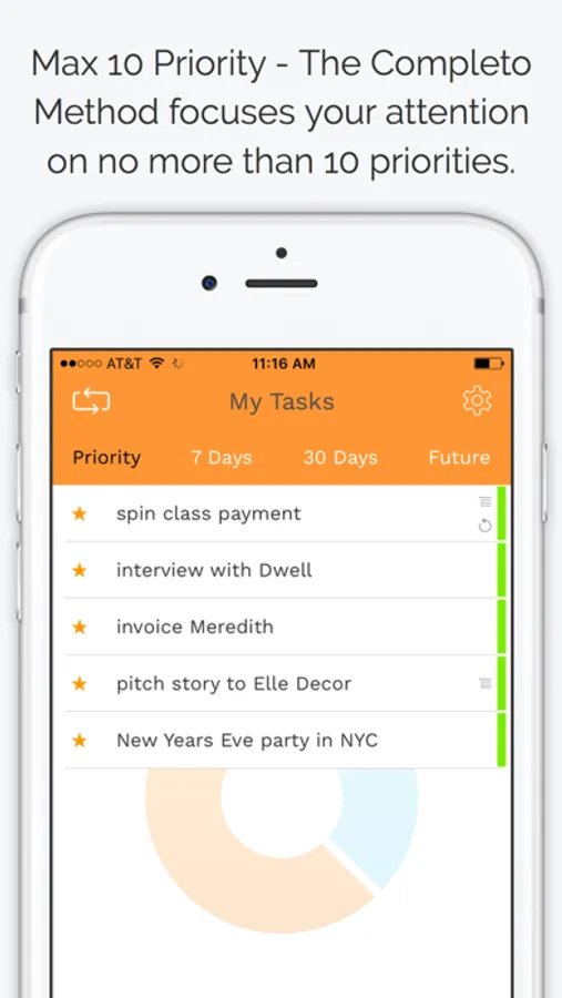 By keeping you focused on your top 10 priorities, across all categories and deadlines, the Completo Method transforms you from overwhelmed to productive.