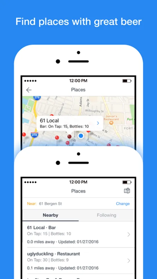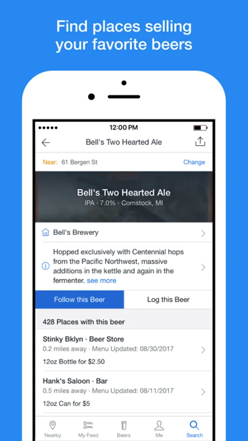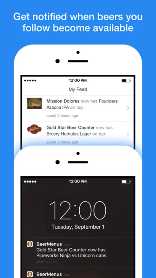 • Get beer recommendation notifications when you arrive at businesses that use BeerMenus.