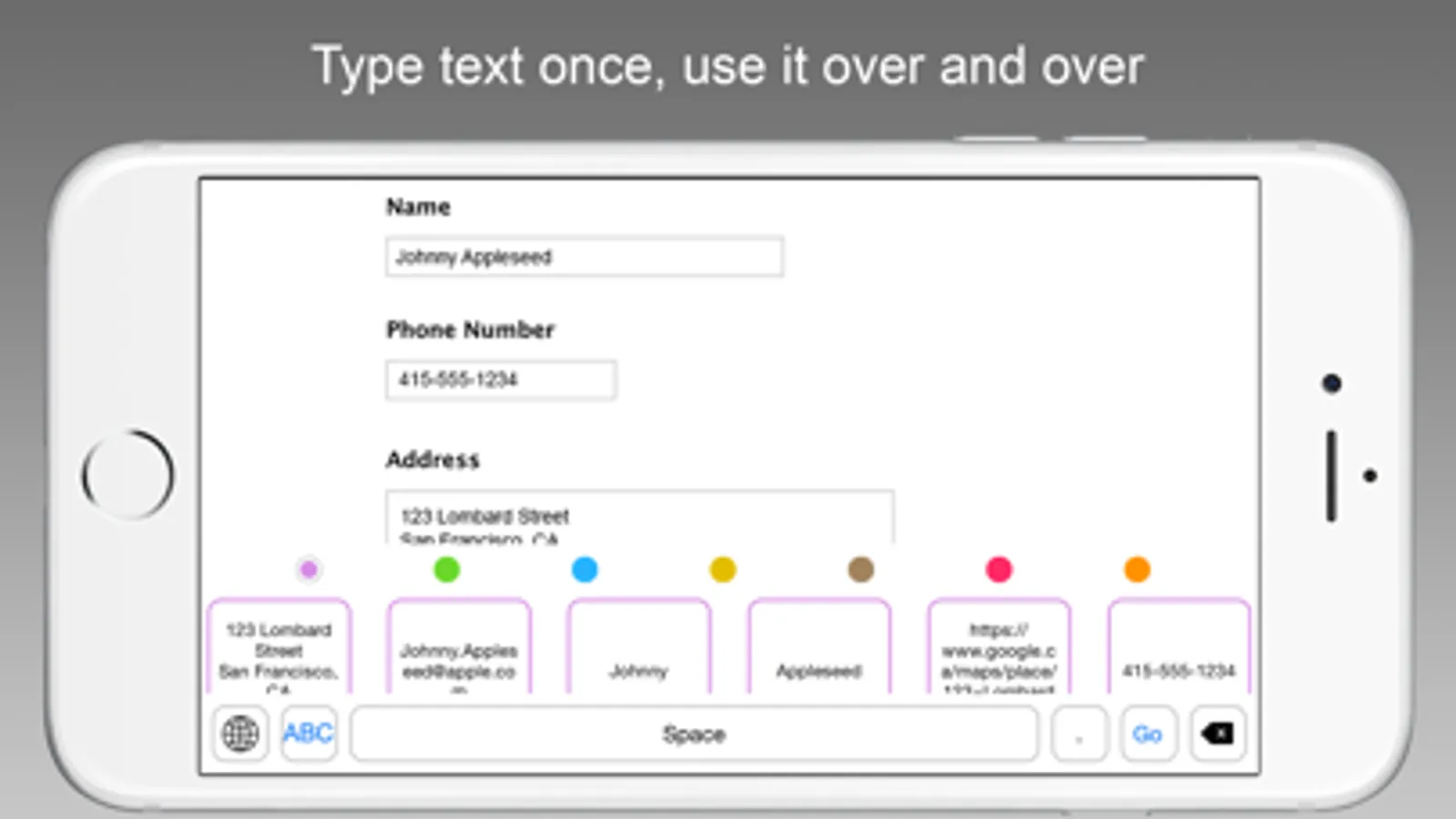 Typing in the same information over and over and over again. Luckily there's an easier way. With Paste It Keyboard, just type in this tedious information once and then call up the keyboard from within other apps and paste your information with just one tap of a button!