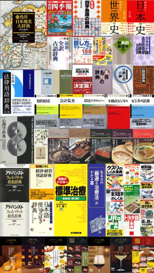 国語・英語などの基本辞書から、古語・心理学・地名・医療系などの専門辞典をはじめ、法律・経済・知的財産等のビジネスで使える専門事典群や、グルメや雑学などのエンターテインメントコンテンツまで幅広く収録し、コンテンツの総額は100万円分を超えています。