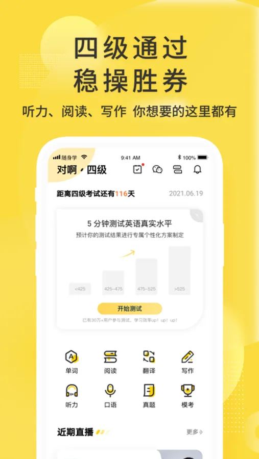 真题题库+摸底测试+智能学习,环环相扣,帮你轻松过四级