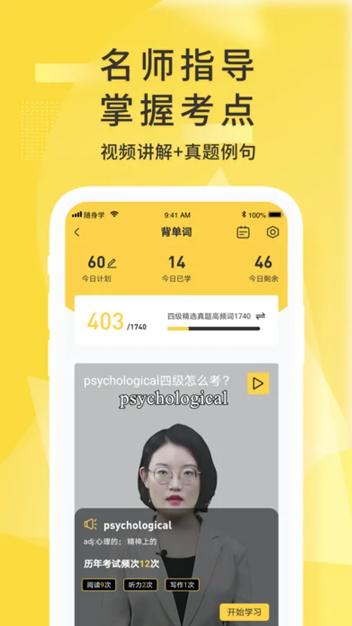 精选四级词汇,高频词汇,名师精编分组,精讲单词考点,帮你十天背完英语四级单词。趣味英语词汇,轻松百词斩,在开心词场里默默背单词,记单词,要的不仅仅是勤奋和努力,女神老师给你讲默默背单词技巧,从不背单词让你到扇贝单词。