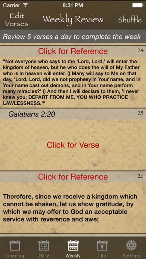 Scriptory is an effective way to not only memorize scripture, but also review over verses that you've already mastered.