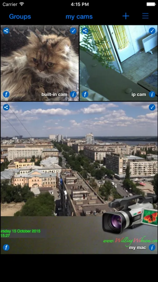 • Watch: See live webcam images on a paired watch. (Please note: The Watch app has a frequency of approximately one image per second.) See the "f" icon on the camera in the main window.