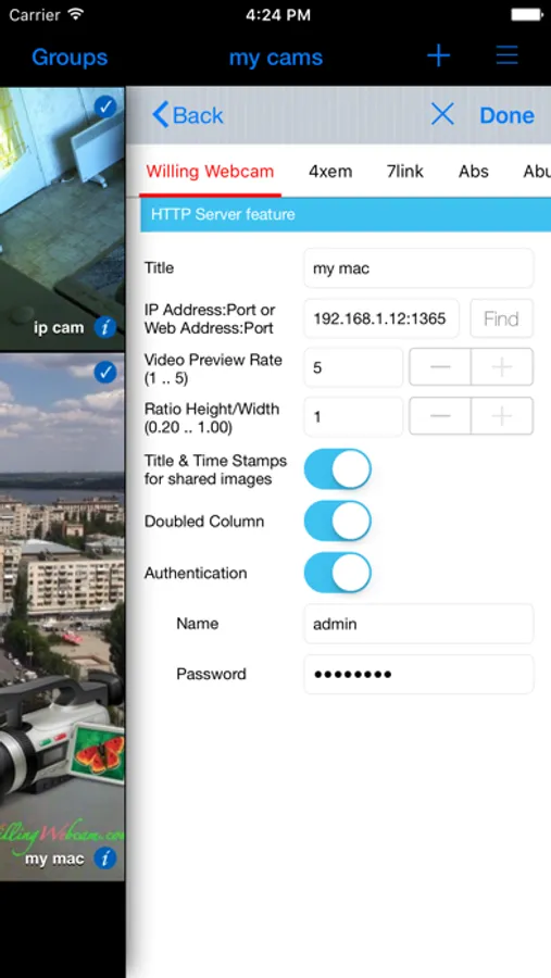 • Specify the Authentication options, if your camera is protected.