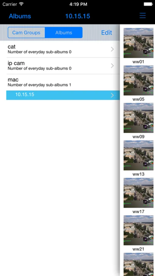 • Albums: Open the left-panel Groups and then the Album window to see the saved images. Tap an image to open an Image or Video window.