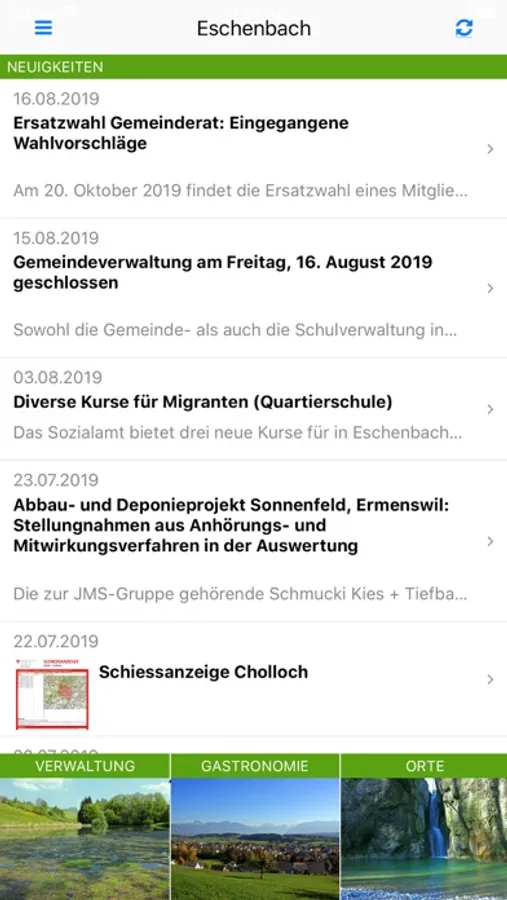 Alles Wissenswerte zur Gemeinde Eschenbach: Agenda, Gastronomie, Sehnswürdigkeiten, Anlagen, Hotels, Vereine, Verwaltung, Abfallsammlungen, Politik, E-Services, GA-Reservationssystem, Online-Schalter.