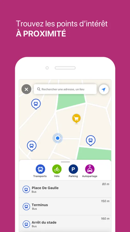 - Une cartographie interactive : repérez les arrêts les plus proches de votre position