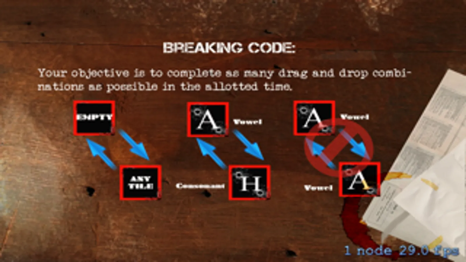 CryptoBreaker is a static, drag and drop strategy game combining WWII Enigma code breaking mechanics with interactive gameplay and an old-school feel, featuring original art by Omar Ibrahim. Players combine vowel and consonant tiles and increase their tile combo scores with the ultimate goal of dragging them to the Enigma’s rotor and breaking each levels code.