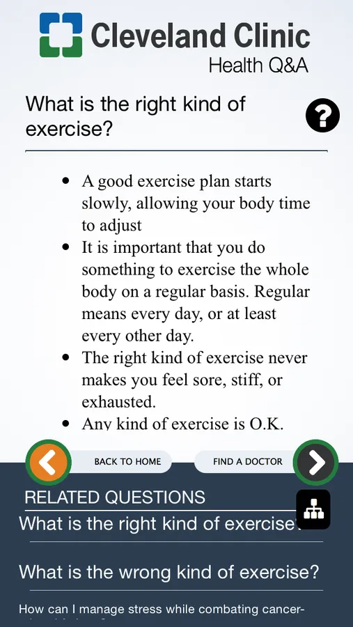 The Cleveland Clinic Health Q&A is a way for patients and consumers to quickly get free health answers and tips from existing physician-reviewed content. The user types or speaks a question into the mobile device.