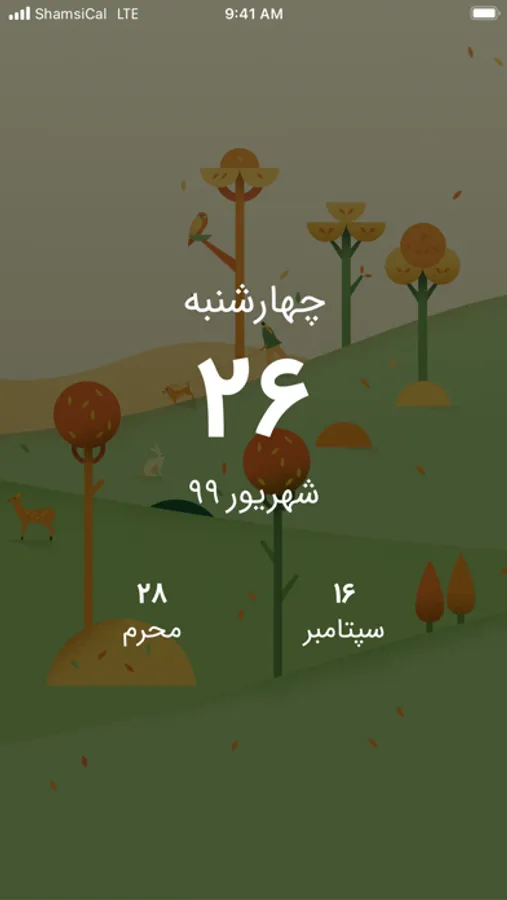 ShamsiCal is a Tiny App which shows you the current date. Just open the app to see today's date in Georgian, Persian and Islamic Calendar.