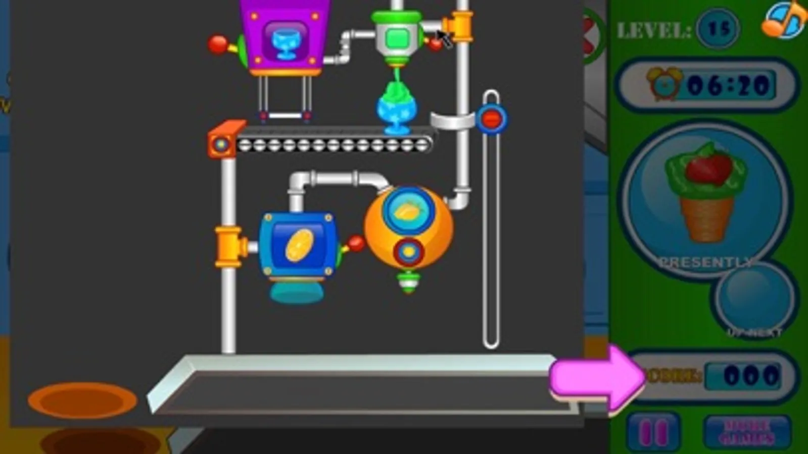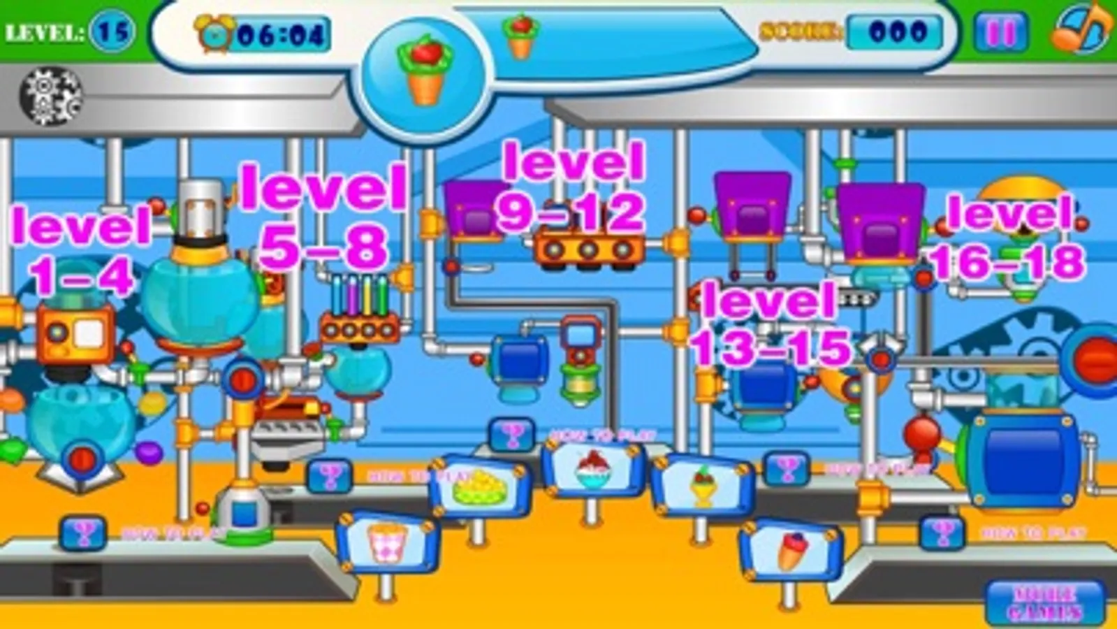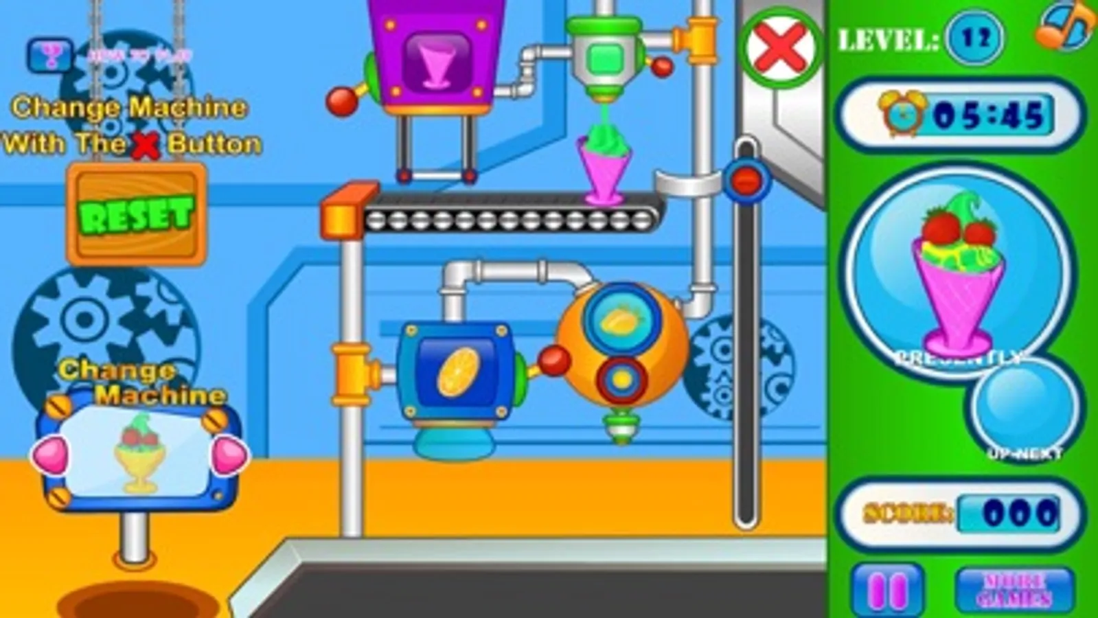 Making ice cream is lots of fun and when running an ice cream business you can live the dream. With this free cooking game online you can make and match ice cream orders so your customers are happy. Here you pull the leavers to move the ice cream along while adjusting the symbols and colors to create the same pattern as your order. Once each order is complete you can move on to the next ones before the time runs out! Once you have completed multiple levels you can then move to unlock new candy making devices and machines! So with this free online cooking game, why not try your hand at matching ice cream orders to see if you can run a factory!