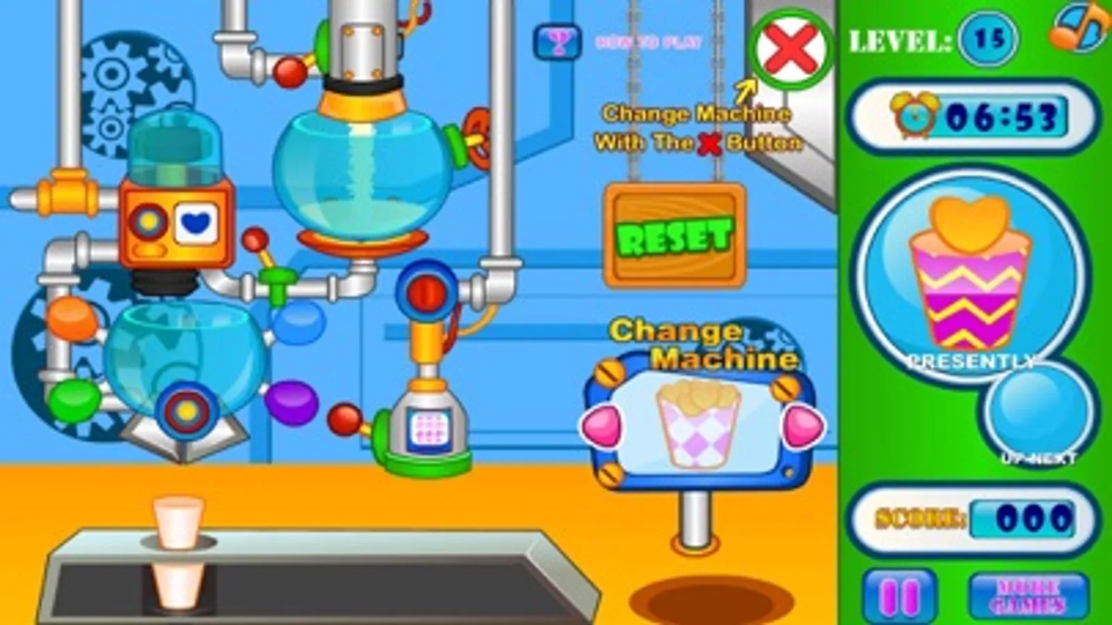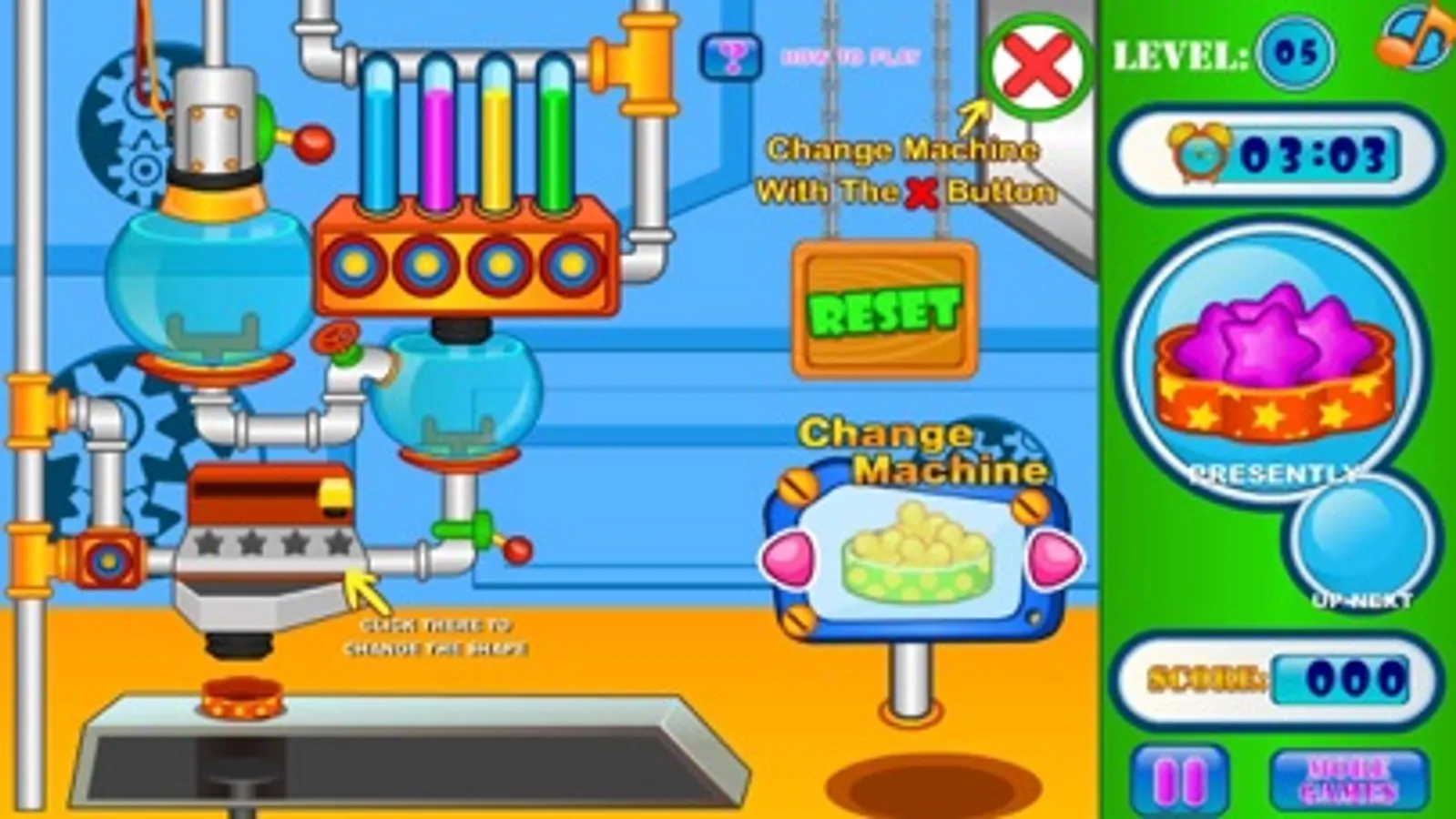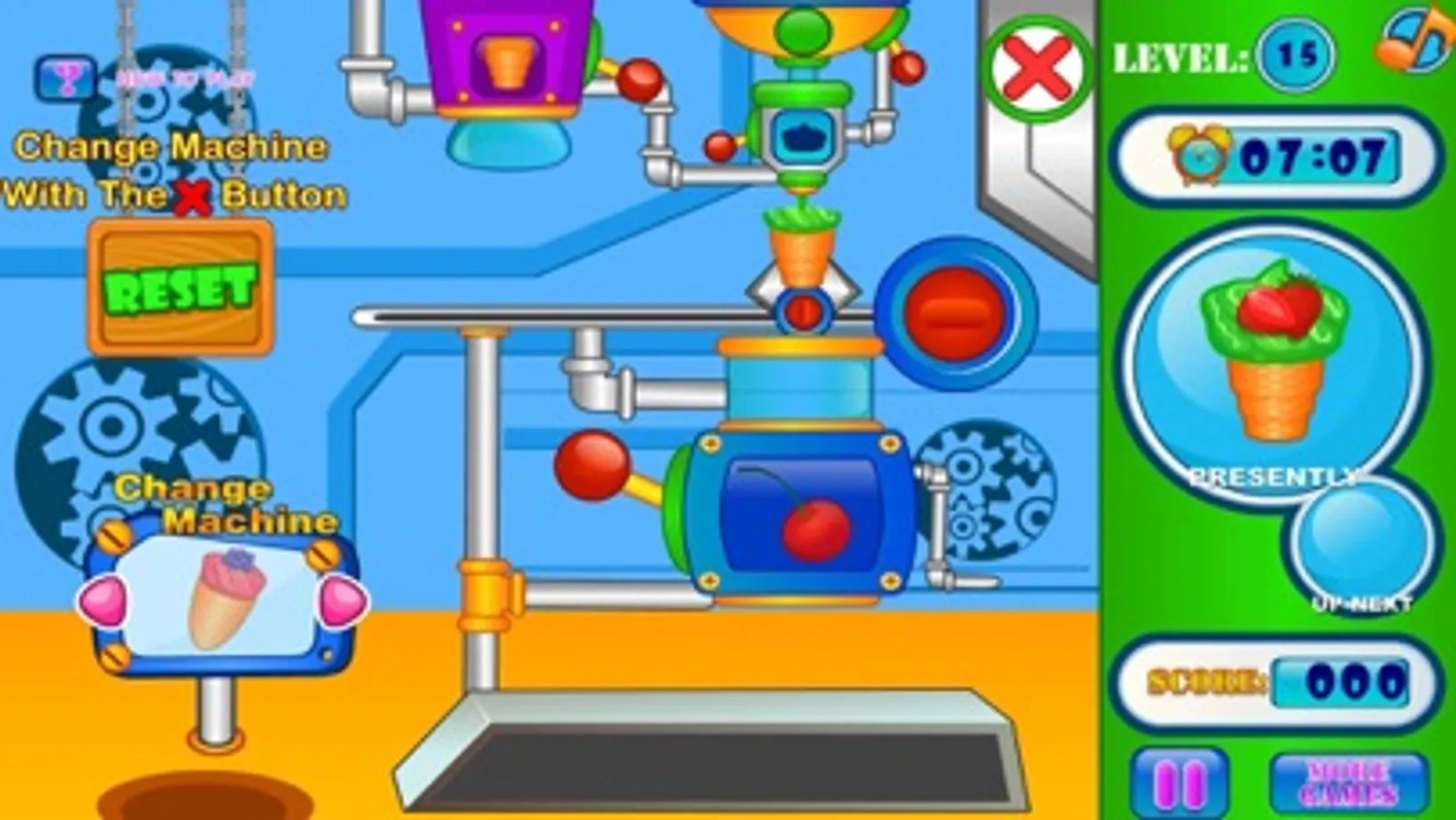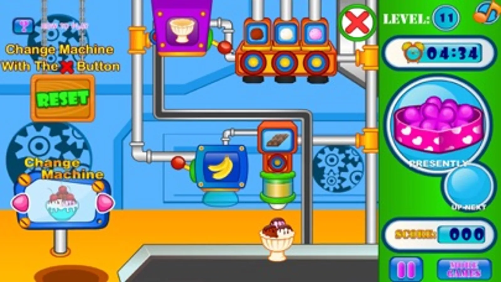 Making ice cream is lots of fun and when running an ice cream business you can live the dream. With this free cooking game online you can make and match ice cream orders so your customers are happy. Here you pull the leavers to move the ice cream along while adjusting the symbols and colors to create the same pattern as your order. Once each order is complete you can move on to the next ones before the time runs out! Once you have completed multiple levels you can then move to unlock new candy making devices and machines! So with this free online cooking game, why not try your hand at matching ice cream orders to see if you can run a factory!