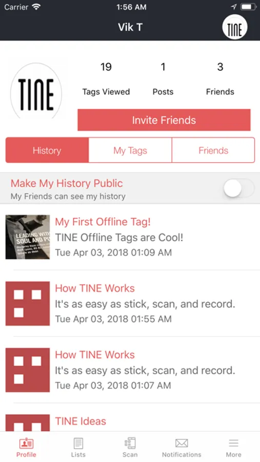 TINE tags are smart stickers that work with the TINE tag app. You can "STICK" a TINE tag on anything, "SCAN" the tag with the TINE app, and then "RECORD" a video or audio message.