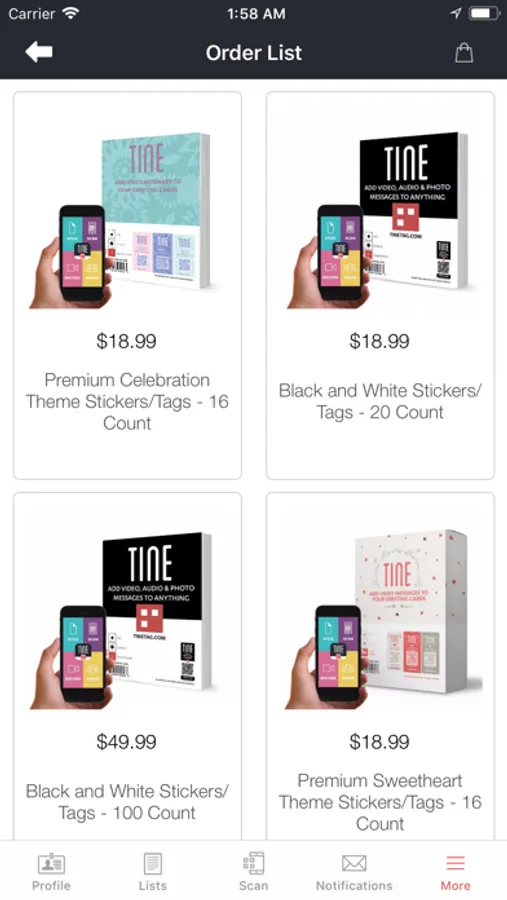 The TINE app works with TINE tags. Make sure you buy some tags at a retail location, or order them from inside the app.