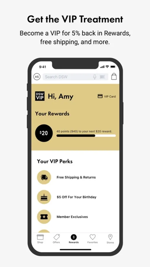 The DSW Designer Shoe Warehouse app delivers a full shopping experience with fast, easy checkout. DSW VIP members can easily access account information, including available Rewards.
