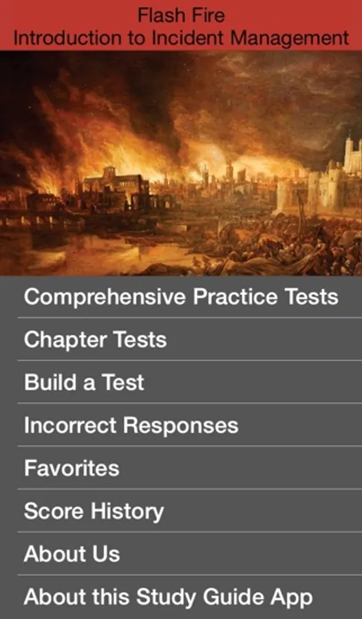 Flash Fire, Intro to ICS, was developed as a study tool for emergency services personnel. The questions are based on the FEMA/EMI IS-100.b Introduction to Incident Command System (ICS-100) course. This app allows you to view all the questions, or Build a Test to customize how many questions you wish to review. It allows you to "Favorite" questions you wish to go back and review and will even track all of the questions you answered incorrectly so you can go back and review them.