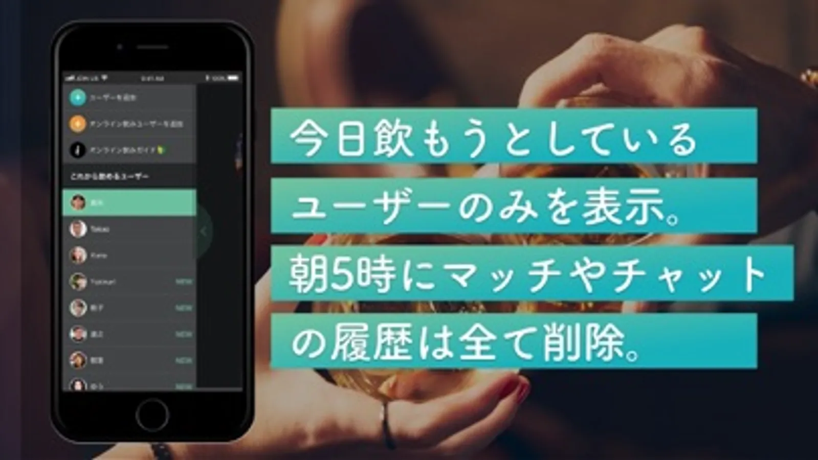 AIマッチングであなたの周囲にいるぴったりな今日の飲み友だちが、かんたんに見つかります。