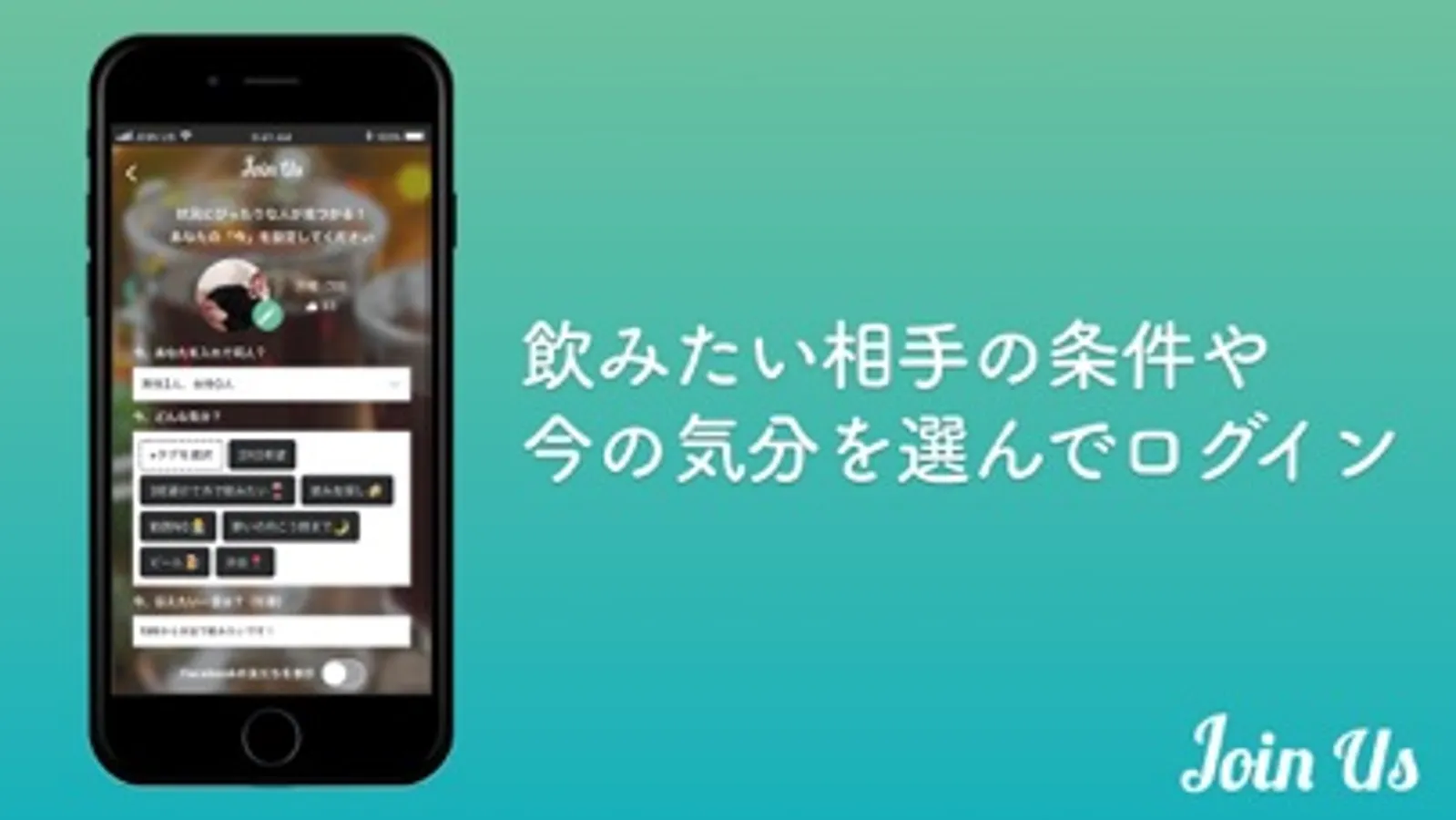 JOIN US : ジョイナスは、飲みたいひとたちをつなぐ国内最大の飲み会マッチングアプリです。