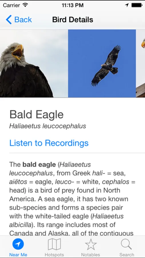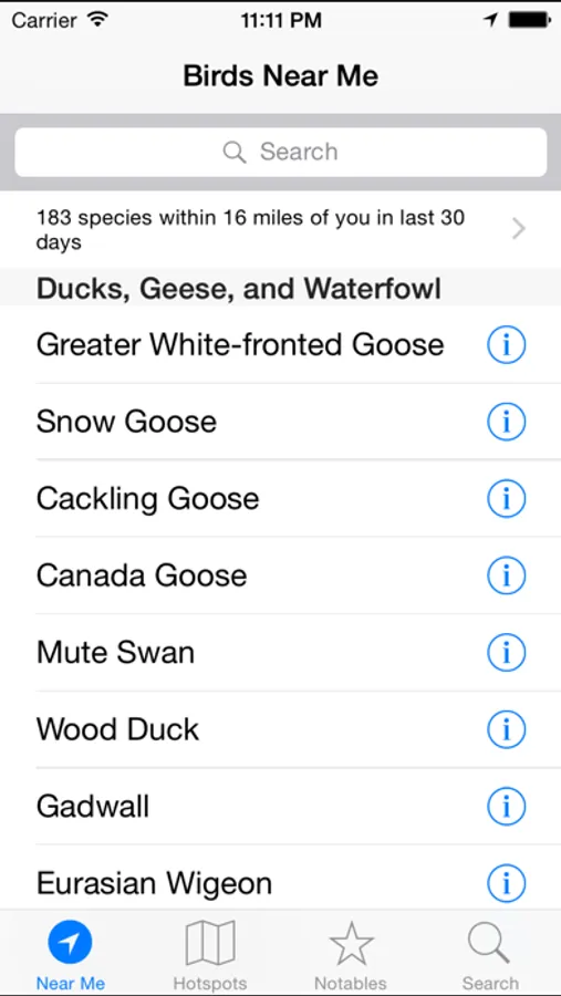 Powered by eBird to provide an accurate list of birds that have been recently spotted in your exact area.