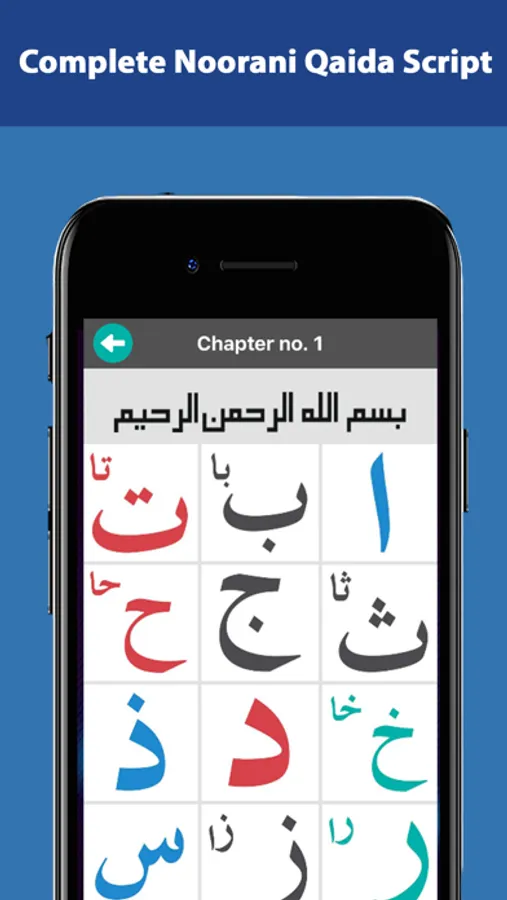 Noorani Qaida App contains chapters and the sequence of the chapters is in accordance to the level of learning from easy to complex.