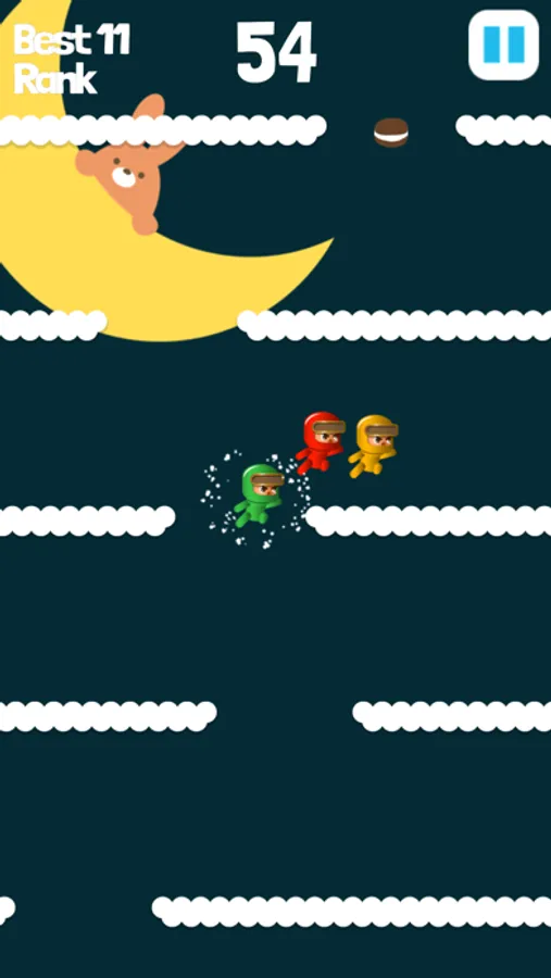 Let's jump high up to get oreo. Don't forget, ninja bros can't go through clouds!
