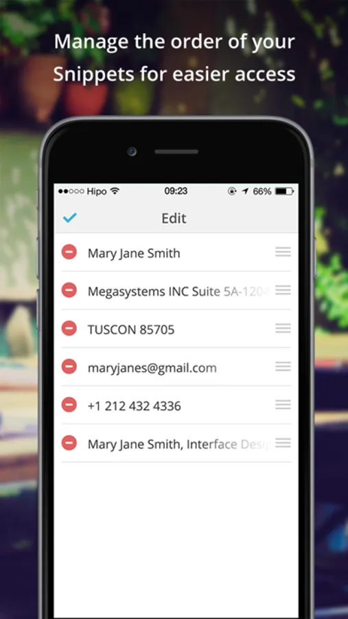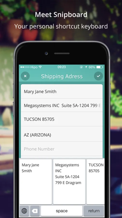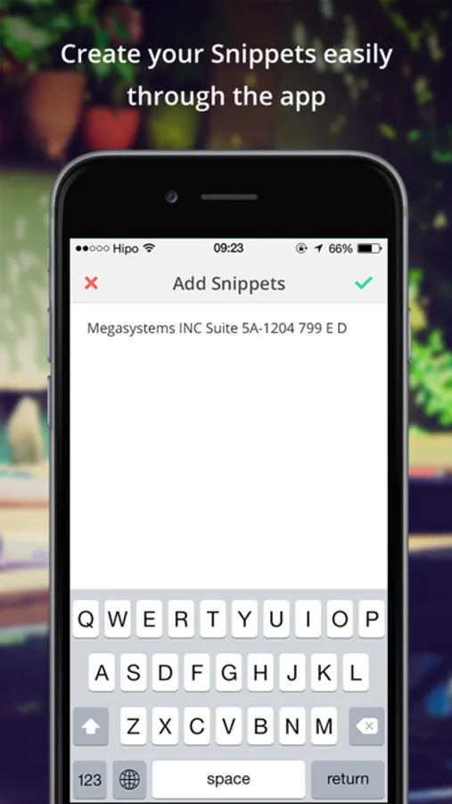 Just open the Snipboard app to add your snippet. It can be your mailing address, e-mail, signature, or any other text you use frequently.