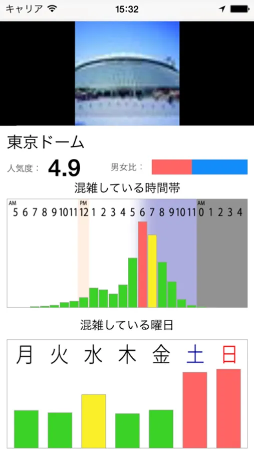 「混雑ビッグデータ」は、現在地周辺のお店・施設の「混雑状況」がわかる便利アプリ。お店や駅、観光スポットが混んでる曜日や、空いている時間帯をすぐ調べることが可能。来店者の男女比も把握可能。無料アプリです。
