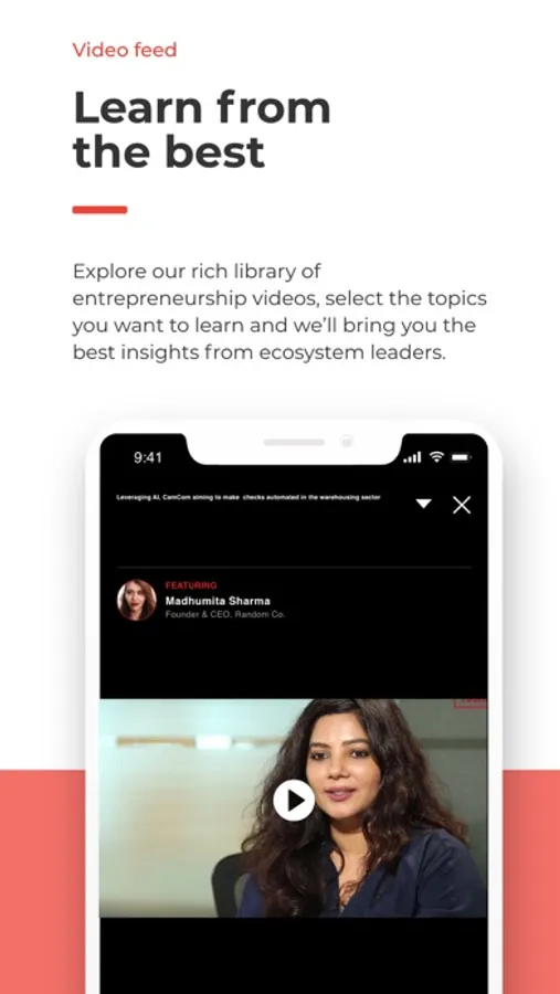 * Learn with Videos: With our video platform, you can learn everything there is to know about the world of entrepreneurship, straight from industry leaders and startup innovators. With our fully immersive field, you can consume video content just like you consume reels on instagram. Explore 2,000+ short and crisp videos from industry experts or choose from our 50+ categories like Leadership, Strategy, Marketing Understanding, Product Management and much more. We’re on a mission to build the largest library of entrepreneurship videos in India!