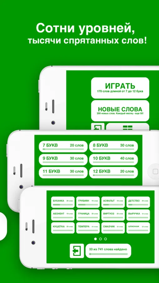 - длина слов-уровней от 7 до 12 букв