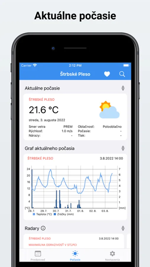 Slovenská predpoveď počasia pre váš telefón s údajmi zo SHMÚ (Slovenský hydrometeorologický ústav).