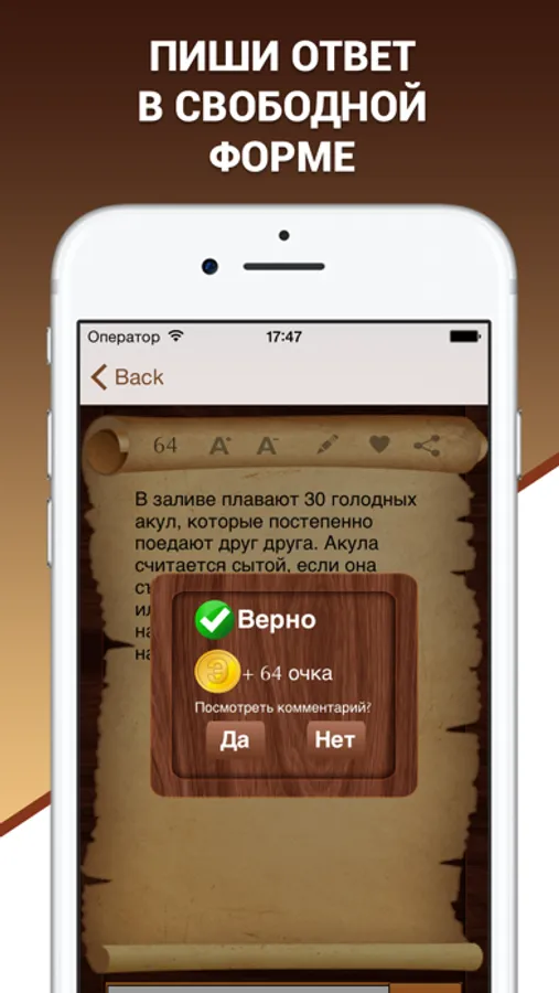 Все задачки имеют комментарий и объяснение решения, однако игрок не может их видеть, пока не догадается до правильного ответа.