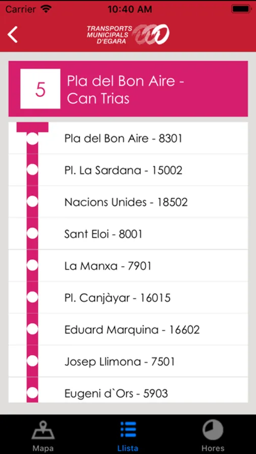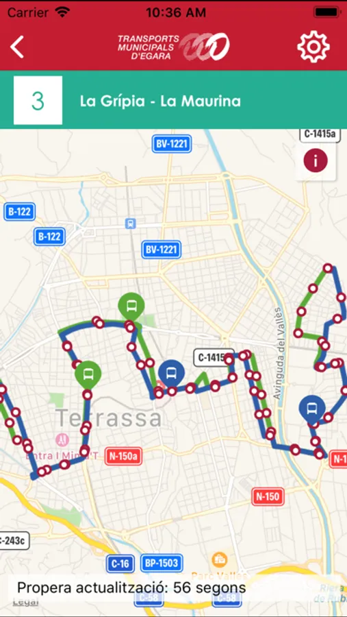 Aplicación oficial de la empresa TMESA (Transports Municipals d’Egara S.A) que informa, a tiempo real, del paso de los autobuses urbanos por las paradas de la ciudad de Terrassa.