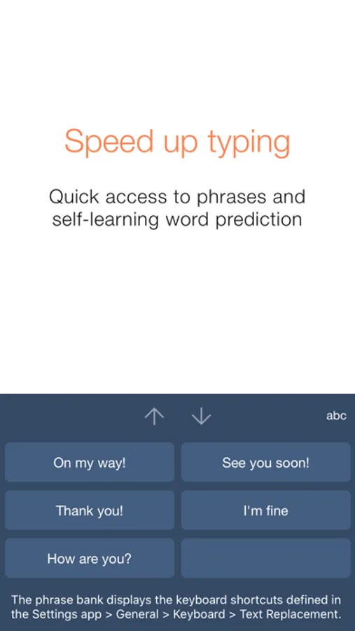 - Benefit from the phrase bank providing quick access to your iOS keyboard shortcuts