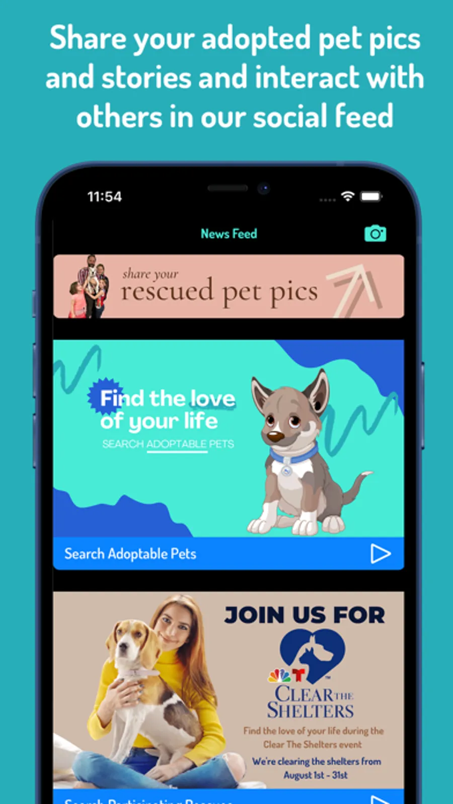 • Advanced Breed search: mixed breeds, designer breeds, and specific breed selection to find your ideal pet