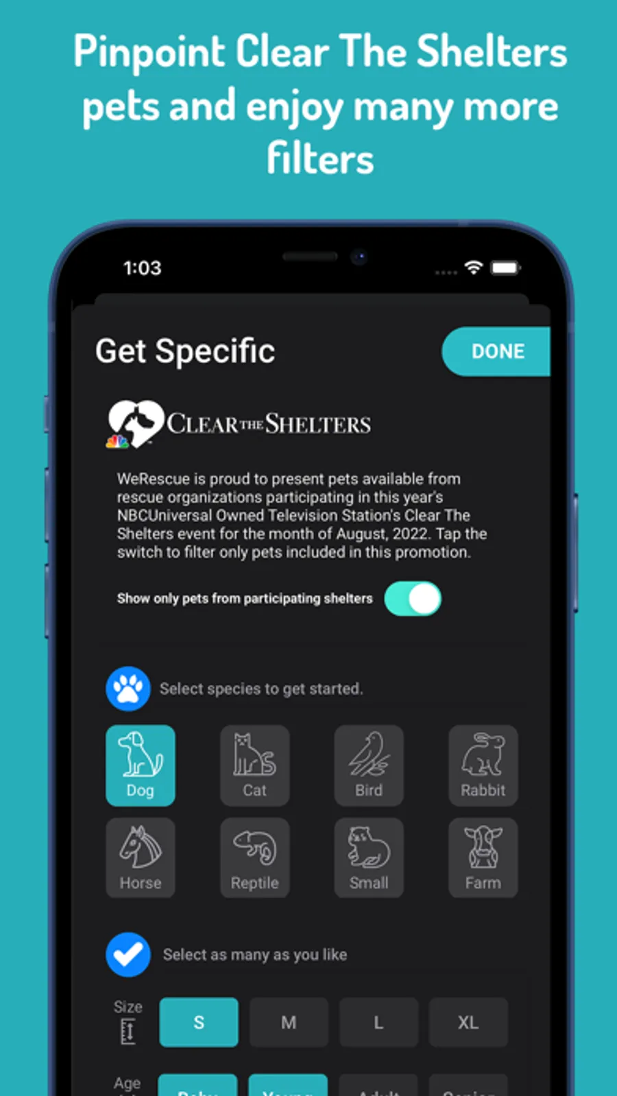 • The most search filters of any pet adoption app: fine-tune your search to find the perfect match