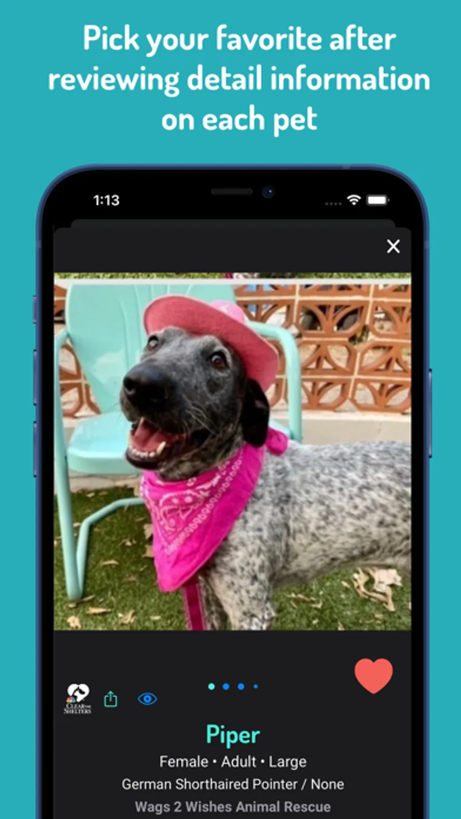 • Comprehensive pet details: gain valuable insights with thorough descriptions, behavioral information, and more