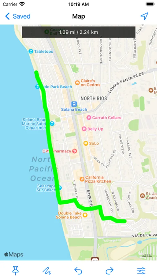 Farness helps you quickly and easily measure distance on a map by dropping pins or drawing a path.