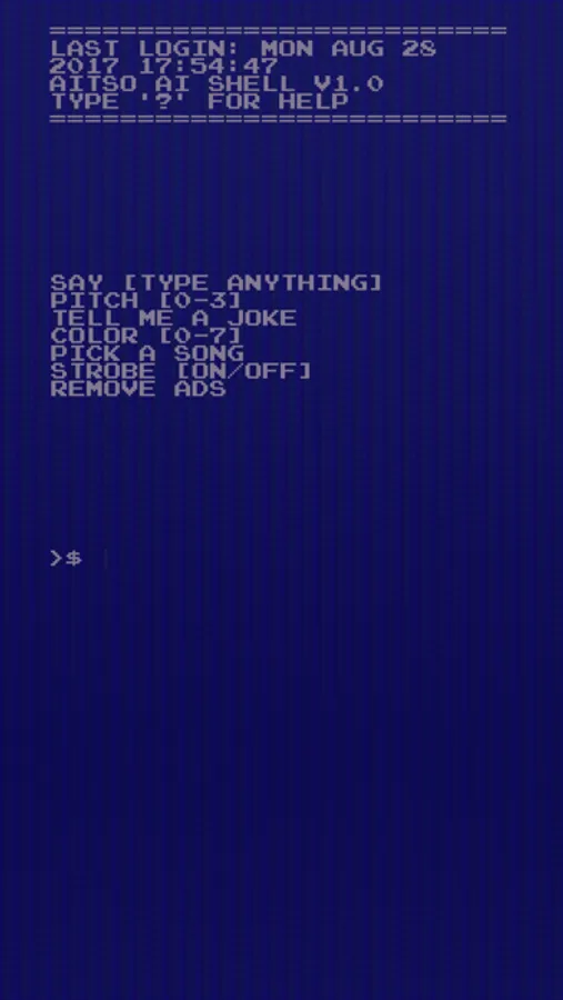 AITSO (Artificial Intelligence Text to Speech Operator) is a throwback to Dr. Sbaitso, which was a DOS-based artificial intelligence speech synthesis program from the 90s. Feel free to ask or tell anything to AITSO, and it will respond intelligently. It will remember your previous conversations and any information you provide it. AITSO can also repeat what you say, change voice pitch, tell a joke, change system background color, pick and play a random song from your music library, and strobe your device’s flashlight. Type ‘?’ for the list of special commands.