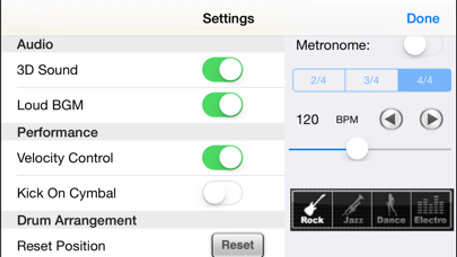 * 4 different drum kit sounds (rock, jazz, dance, electronic)