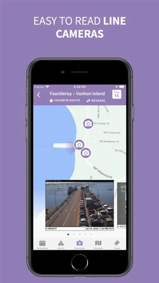 • Ferry line cameras are shown on a map so you can easily see how long the line is before you arrive.