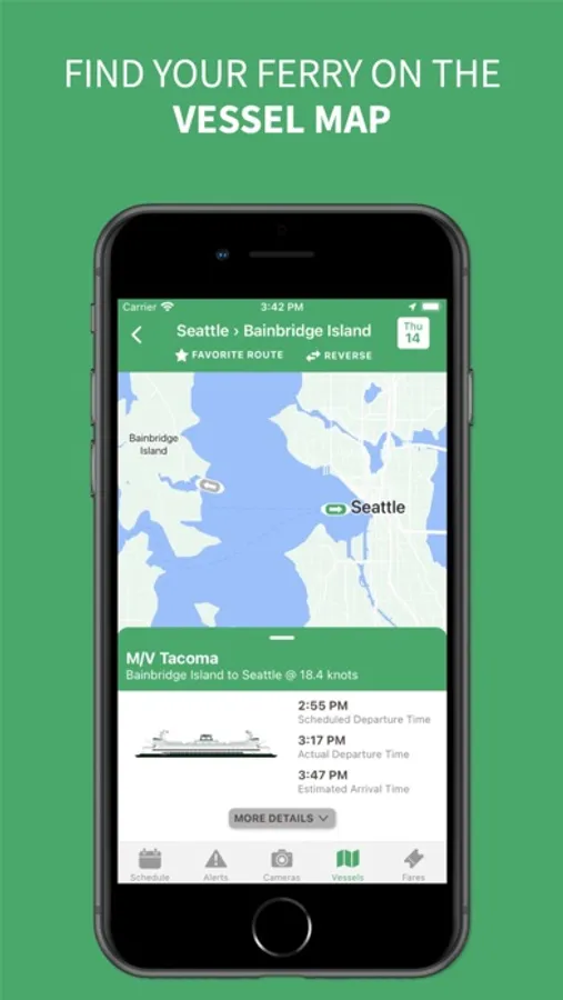 • Live vessel position map that lets you see where your ferry is in real-time.