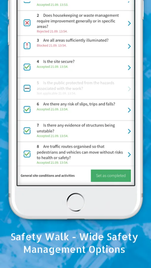 - Quick and user-friendly safety walks