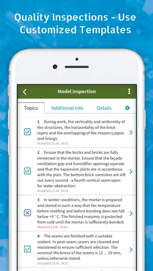 - Quality inspections and quality audits