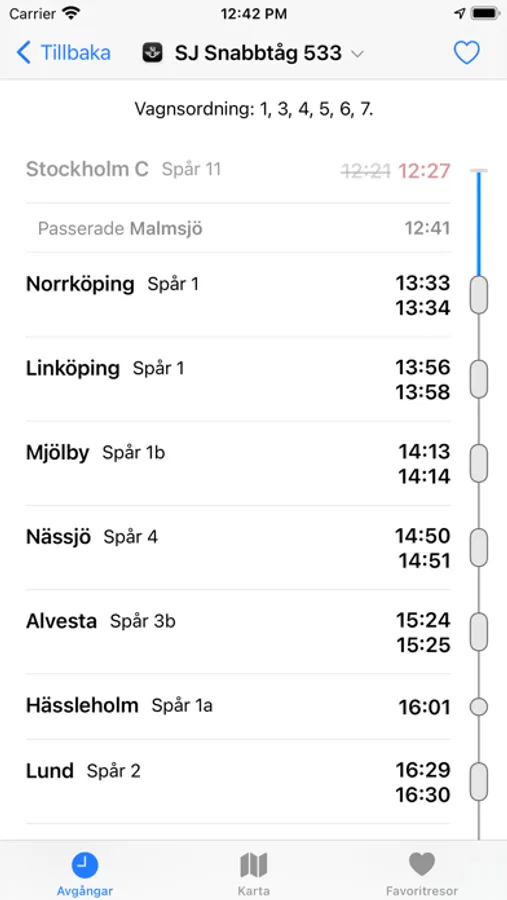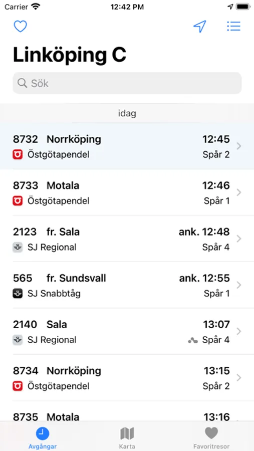 Appen Tåg visar trafikinformation för svenska tåg. Se avgångar för din närmaste station och lägg till favoriter för resor du är intresserad av. Dina favoriter visas med information om nästa aktuella resa, i appen, med Siri, på Apple Watch och i widgets. Med widgets kan du enkelt se om ditt tåg är försenat eller spårändrat direkt på hemskärmen!