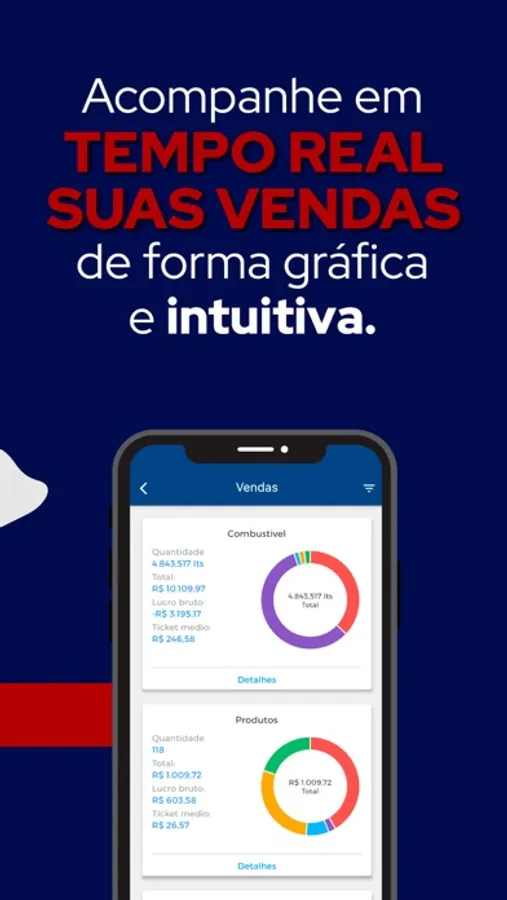 • Acompanhe suas vendas - Todas as informações detalhadas de suas vendas com comparativos e indicadores.