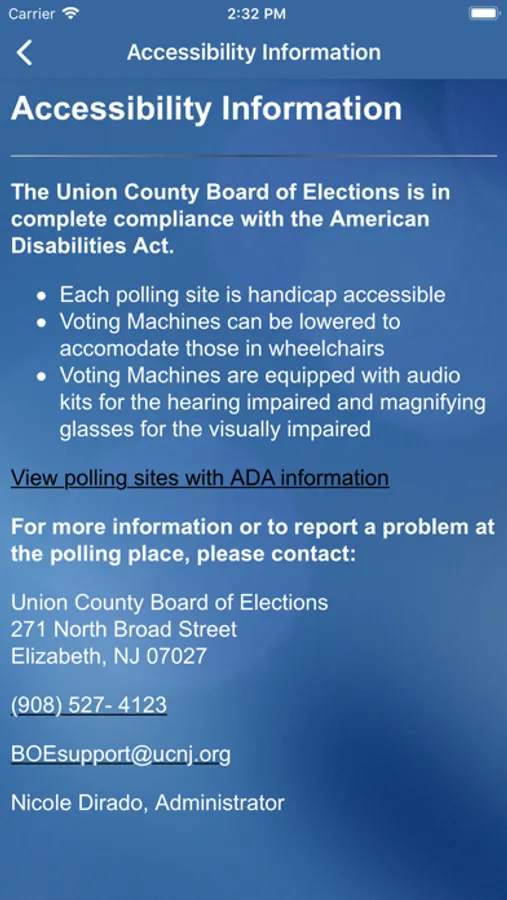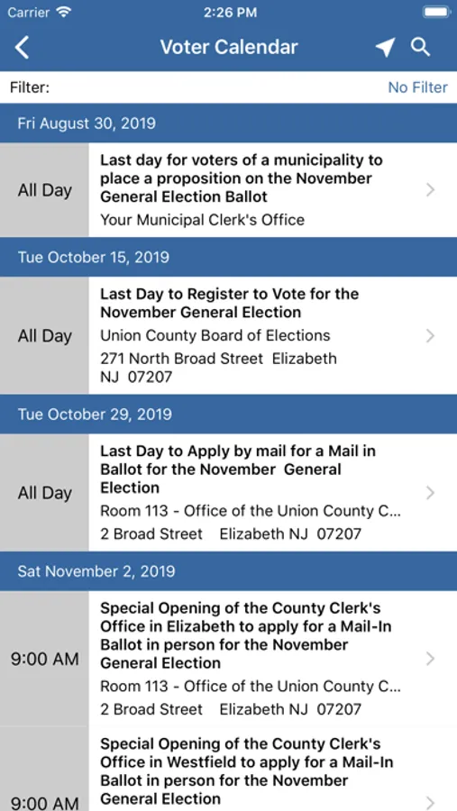 The Union County NJ Votes app will provide users with voting information including how to register to vote; where to vote; how to apply for a vote by mail ballot; important election dates; how to vote using the machines or a vote by mail ballot; how to apply to work at a polling place; accessibility information; how to become a candidate; campaign finance information; election results; information for federal overseas or military voters; and how to contact the Union County Clerk’s Office.