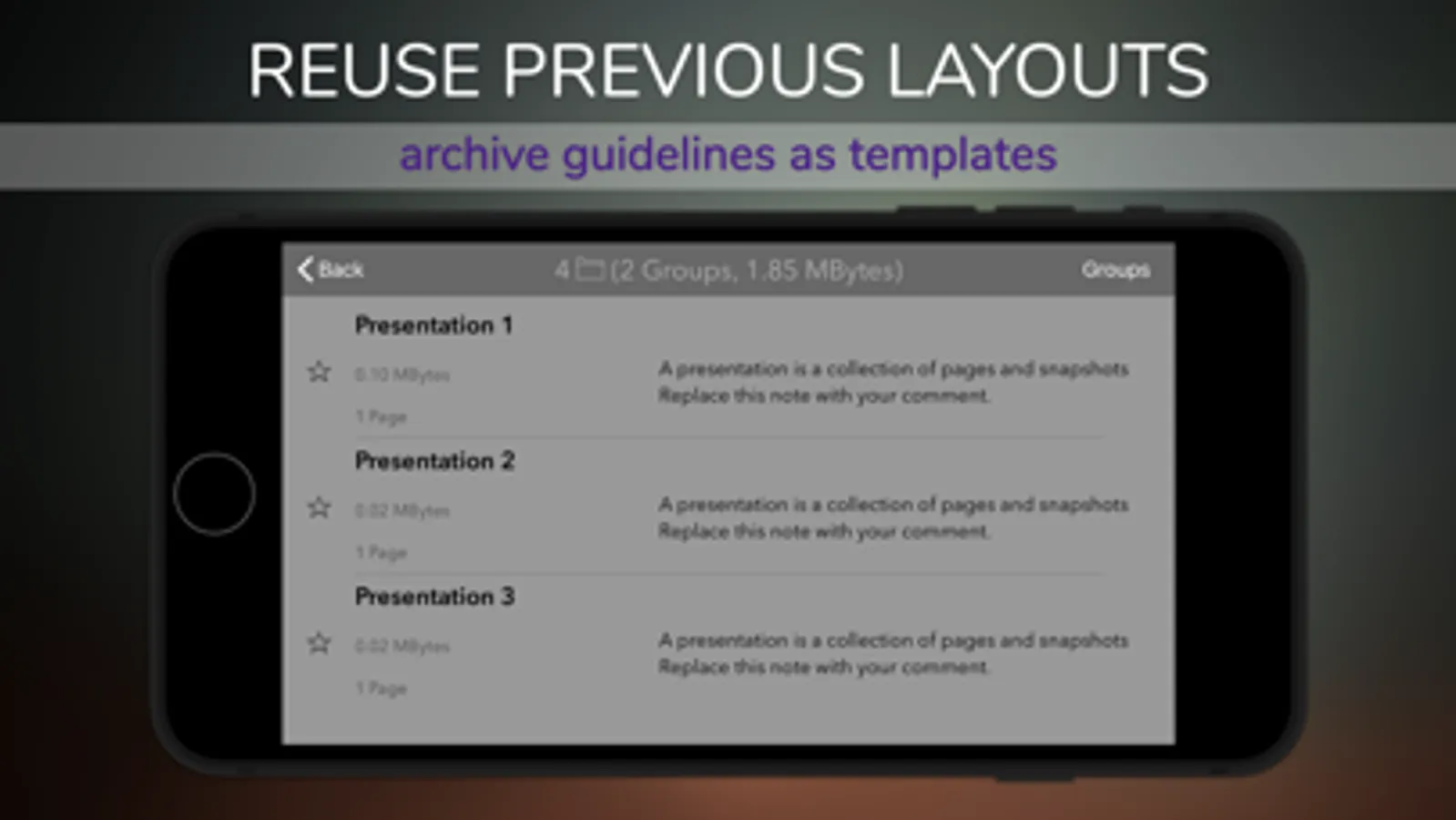 - Symbols and built-in mockups: more than 200 items (iPhone, iPad, basic websites, etc.) can be customized (font, size, color, text).