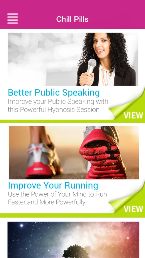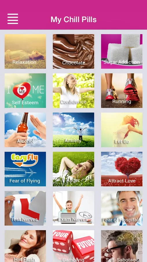 Do you want to sleep better, improve your running, reduce stress and anxiety, get over your fear of flying or pass your driving test? Your Chill Pill app will help you with all of these and much, much more...