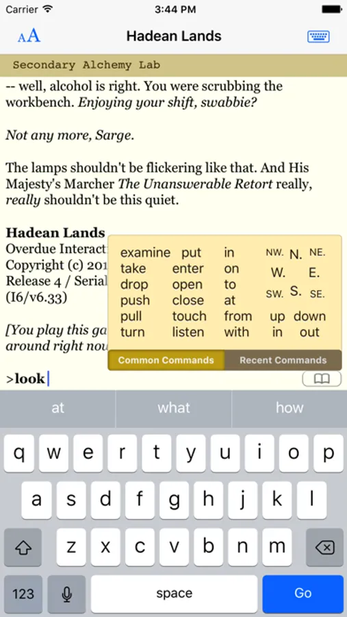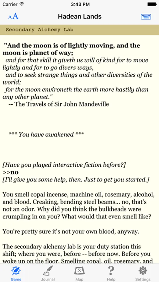 *Hadean Lands* is interactive fiction — a classic text adventure. No graphics! No menus! No point-and-click! You type your commands, and read what happens next.